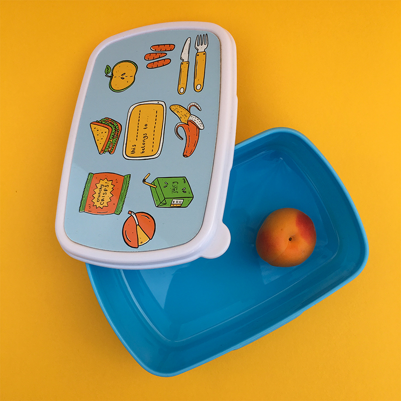 Protect your child's sandwiches with a personalised plastic lunch box. There is a tab on the corner of the lid that makes it easy to open.