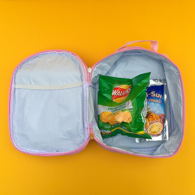 Personalised canvas children's lunch bag which can be personlaised with names, images and graphics. The bag has one netted pocket inside to hold juice cartons. Can easily store a lunchbox, fruit and snacks for kids. Easy to hold handle makes it perfect for smaller children.